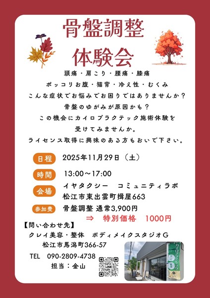 骨盤調整 体験会 クレイ美容・整体 ボディメイクスタジオG