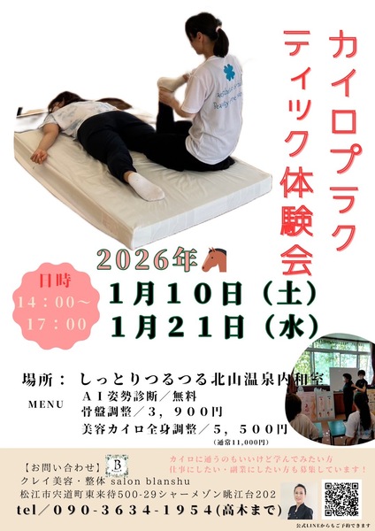 カイロプラクティック体験会 クレイ美容・整体 salon blanshu